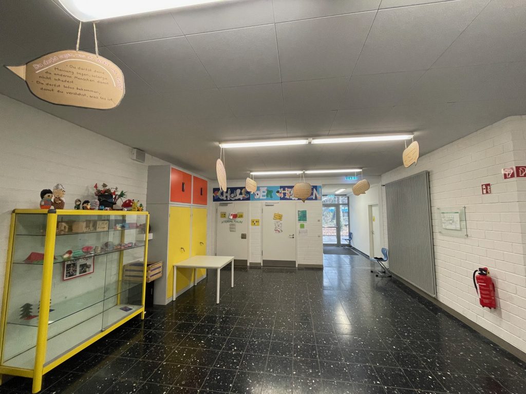 Anlässlich des Tages der Kinderrechte wurden deswegen verschiedene Kinderrechte aufgemalt und in Sprechblasen in der Schule aufgehängt. Die Kinder hatten die Möglichkeit ihre Meinung zu den Kinderrechten aufzuschreiben und mit anderen zu diskutieren.